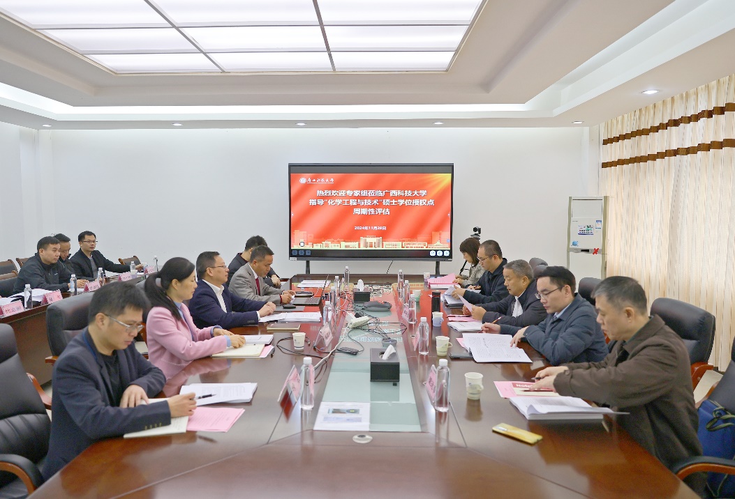 11月28日,“化學工程與技術”一級學科碩士學位授權點周期性合格評估會在文昌校區辦公樓5—1會議室召開。廣西大學李有志教授、湖南科技學院覃佐東教授、廣西民族大學劉紹剛教授、廣東省科學院生物與醫學工程研究所梁達奉教授級高工、廣西大學廖丹葵教授受邀擔任評估專家。學校黨委常委、副校長李健出席會議。